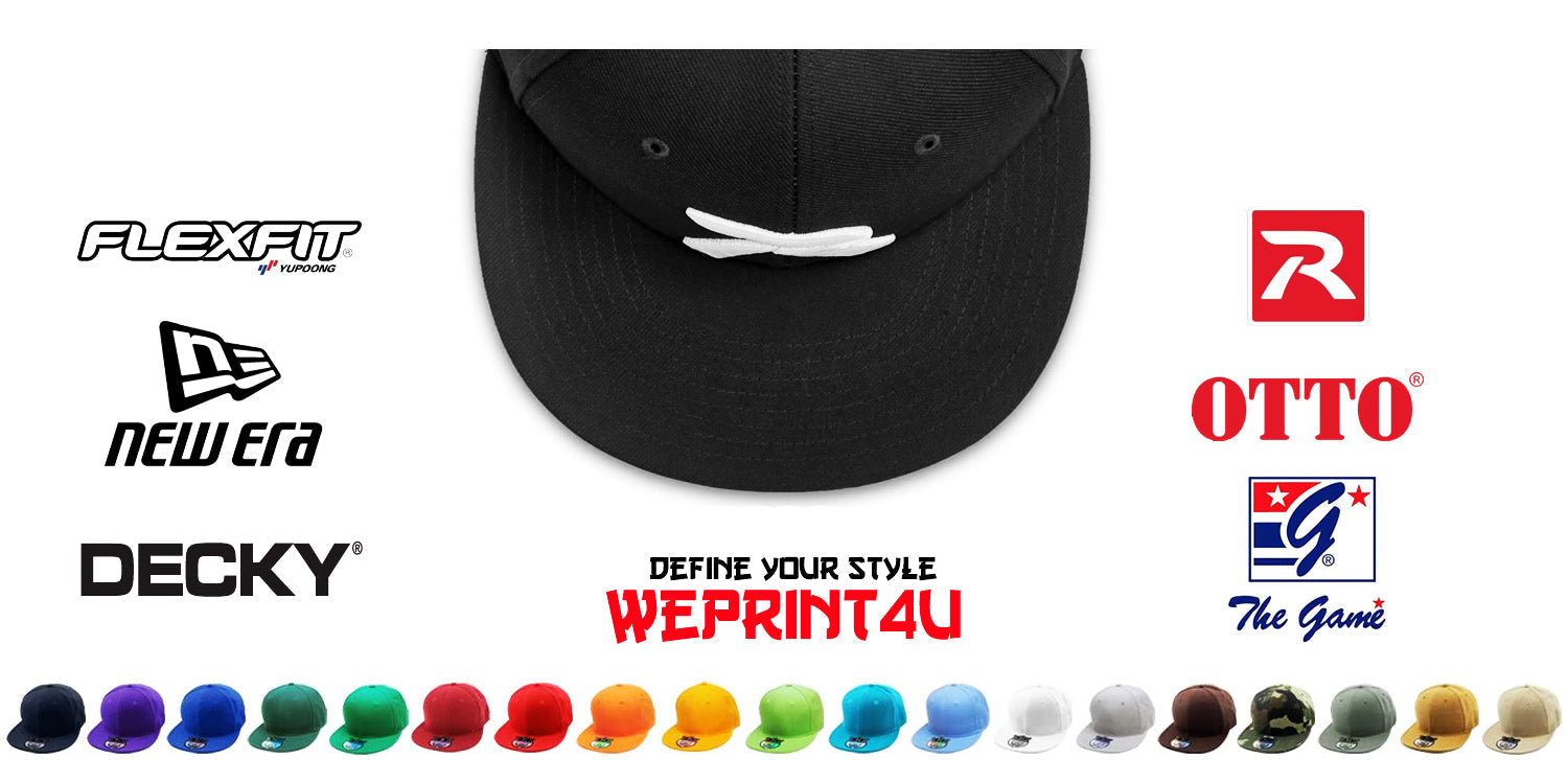 Choose from several styles of caps Snapbacks , Dadhats . Flexfits and many more also you have the option to choose either 2d flat or 3d puff printing